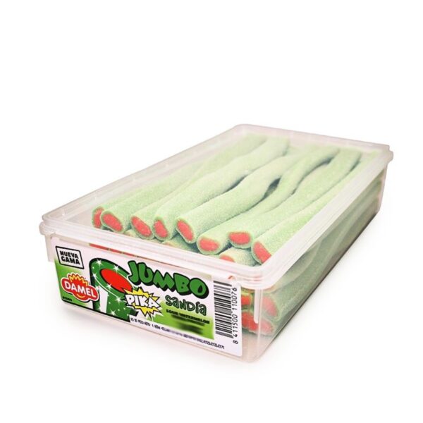 Ζελεδένια Γεμιστά καλώδια Καρπούζι, με πασπαλισμένη ξινή καραμελόσκονη, σε τεράστιο XL μέγεθος.
